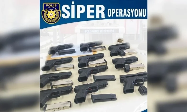 Özel Soruşturma Şube ekiplerinin gerçekleştirdiği operasyonda H.A.’nın evinde 11 tabanca, 11 şarjör ve 9 canlı mermi ele geçirildi; bağlantılı Y.S. ile birlikte her iki kişi tutuklandı
