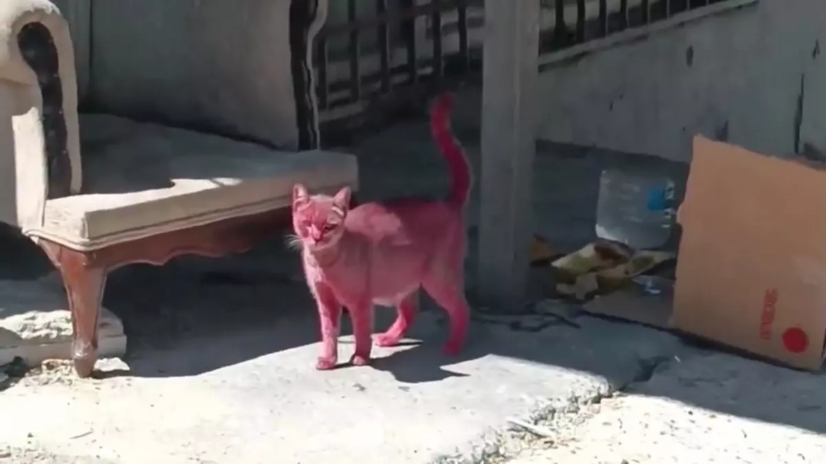 Yer: Türkiye Esenyurt! Kediyi pembeye boyadılar