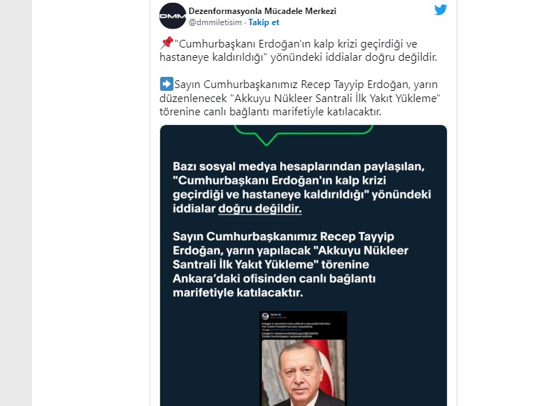 Türkiye Cumhurbaşkanlığı İletişim Başkanlığı’ndan ‘Erdoğan kalp krizi geçirdi’ haberlerine yalanlama