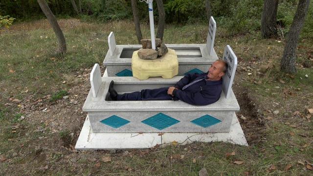 Ölmeden kendisinin ve eşinin mezarını yaptırdı, her gün içinde yatıyor