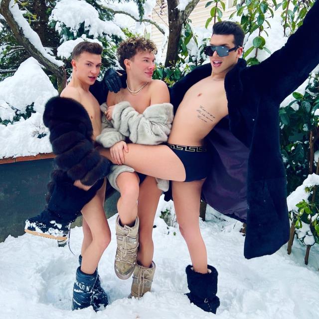 Sosyal medya fenomeni Kerimcan Durmaz, karda iç çamaşırıyla poz verme akımına uydu. Yakın arkadaşlarıyla yarı çıplak şekilde karda poz veren…