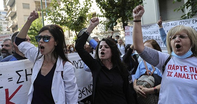 24 saatlik greve giden doktor ve sağlık çalışanları, başkent Atina’da gösteri düzenledi