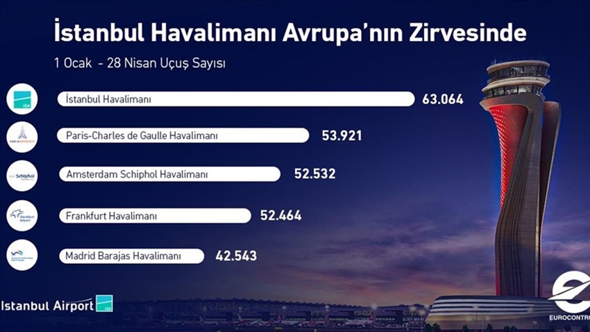 stanbul Havalimanı, 63 bin 064 uçuşla 2021 yılının ilk 4 ayında Avrupa’nın en çok sefer yapılan havalimanı oldu. Avrupa Hava…