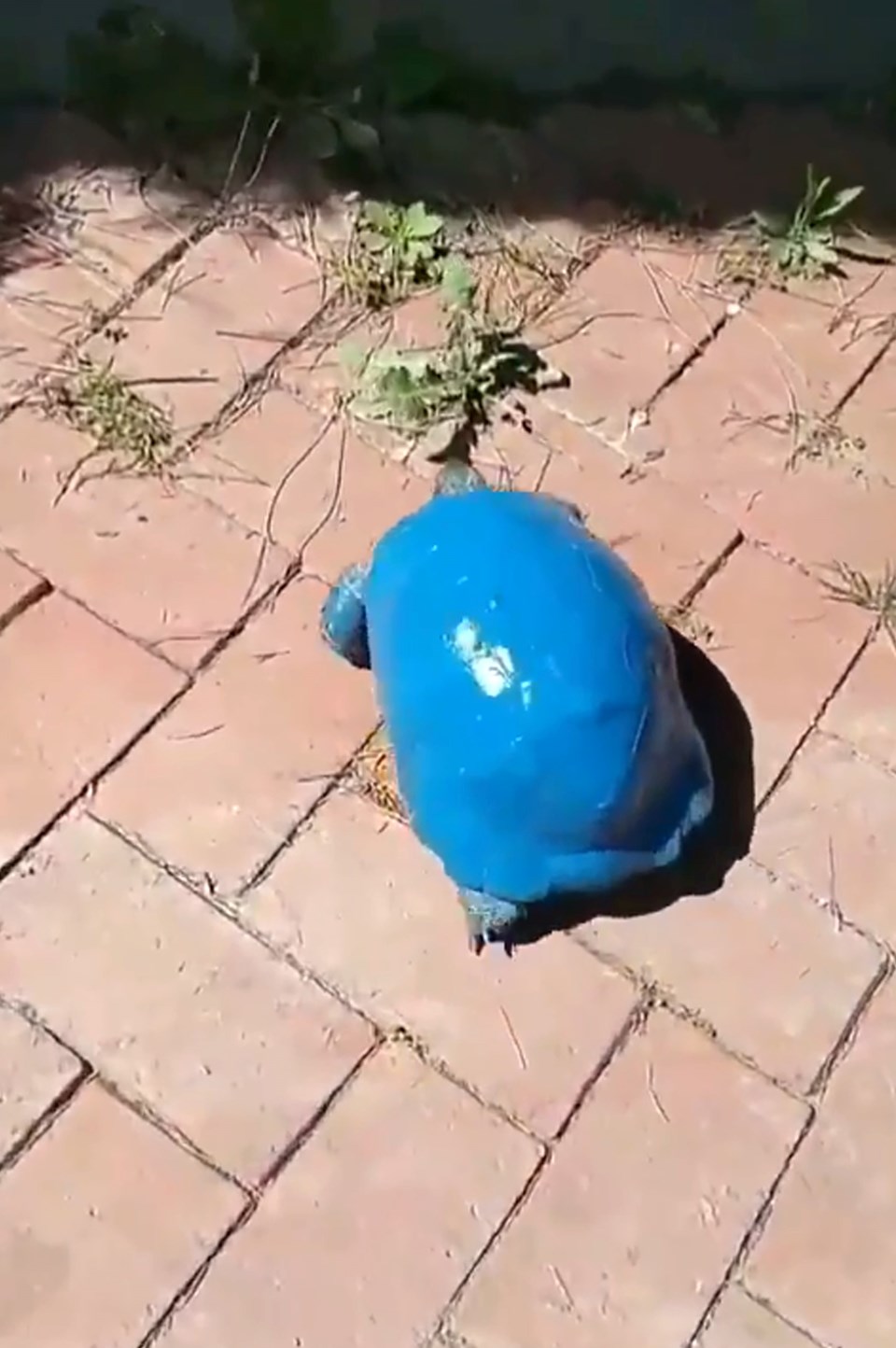 Vicdansızlık! Kaplumbağayı maviye boyadılar
