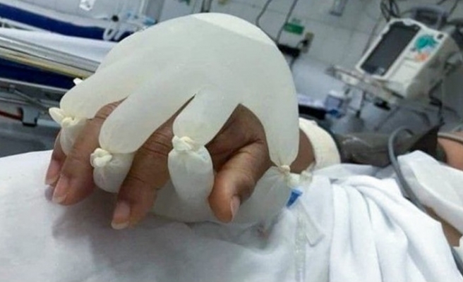 Hemşirelerden Covid-19 hastalarına özel eldiven