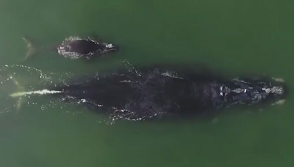 Nesli tükenme tehlikesi altındaki Kuzey Atlantik buzul balinası, yavrusuyla görüntülendi