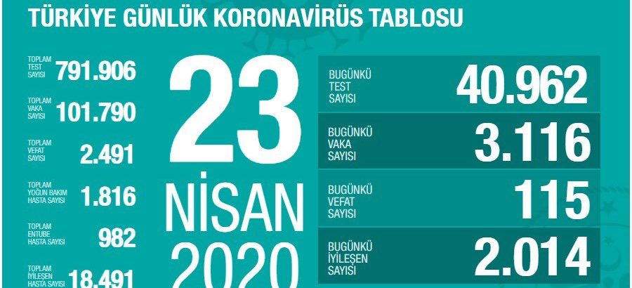Türkiye’de son 24 saatte 3 bin 116 kişiye Covid-19 tanısı konuldu, 115 kişi hayatını kaybetti, toplam vaka sayısı 101 bin…