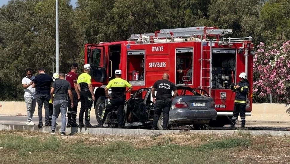 Gazimağusa-İskele ana yolunda araç yangını!