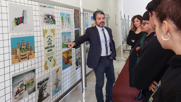 Namık Kemal Lisesi’nde açılan ‘Çevre Karikatürleri Sergisi’ büyük ilgi gördü