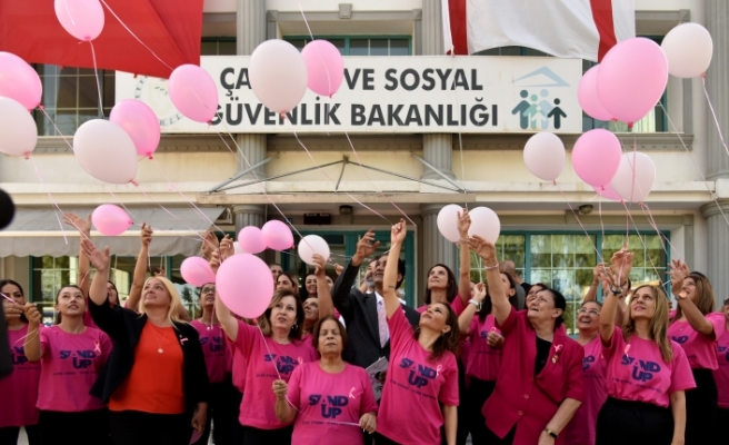 Çalışma ve Sosyal Güvenlik Bakanlığı personeli meme kanserine dikkat çekmek için pembe balon uçurdu
