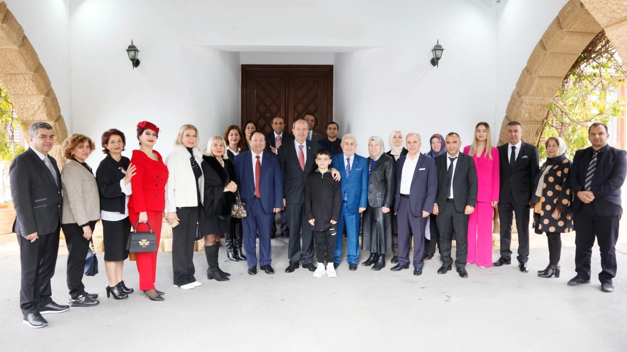 Cumhurbaşkanı Ersin Tatar, Türkiye-Kıbrıs Türk Cumhuriyeti İş Birliği Cemiyeti heyetini kabulünde, “Anavatan, yavru vatan, Mavi Vatan birlikte geleceğe daha güçlü…