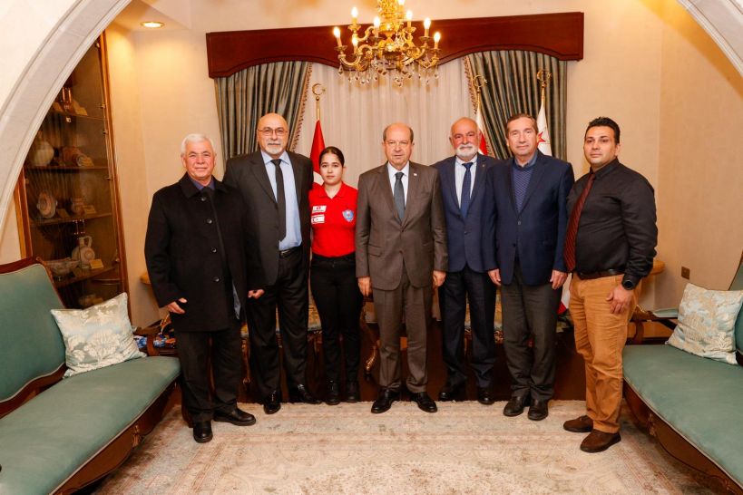 Cumhurbaşkanı Ersin Tatar, Kuzey Kıbrıs Bilardo Federasyonu yönetimi ve milli sporcu Alara Ghaffari’yi kabul etti