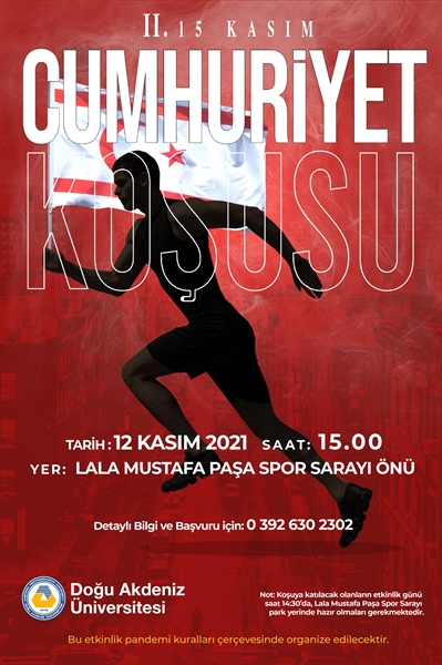 Doğu Akdeniz Üniversitesi (DAÜ) Spor İşleri Müdürlüğü tarafından 15 Kasım Cumhuriyet Koşusunun 2.’si düzenlenecek. DAÜ’den yapılan yazılı açıklamaya göre, 12…
