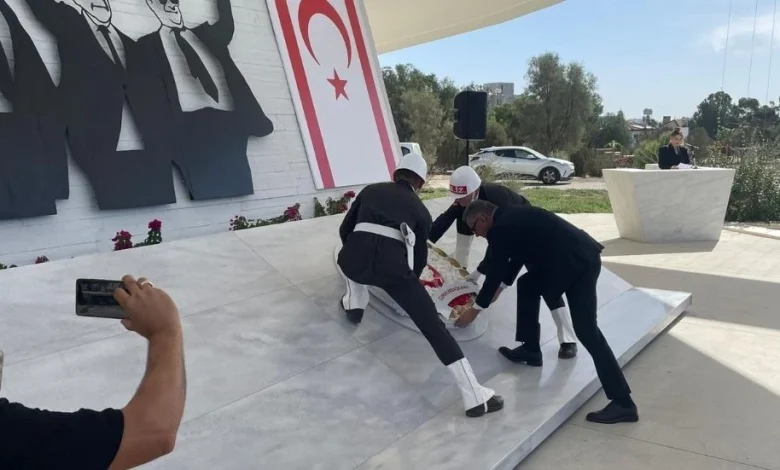 Tören, saygı duruşu ve İstiklâl Marşı eşliğinde bayrakların göndere çekilmesiyle başladı. Anıt mezara çelenk koyan Cumhurbaşkanı Erhürman daha sonra Anıt Özel Defteri’ni imzaladı.