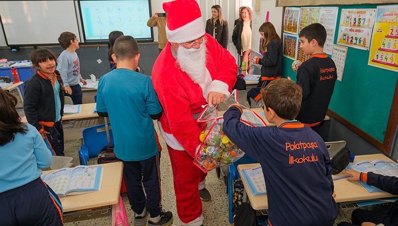 Belediye ekipleri, Noel Baba kostümleriyle sınıflara girerek çocuklara hediyelerini verdi.