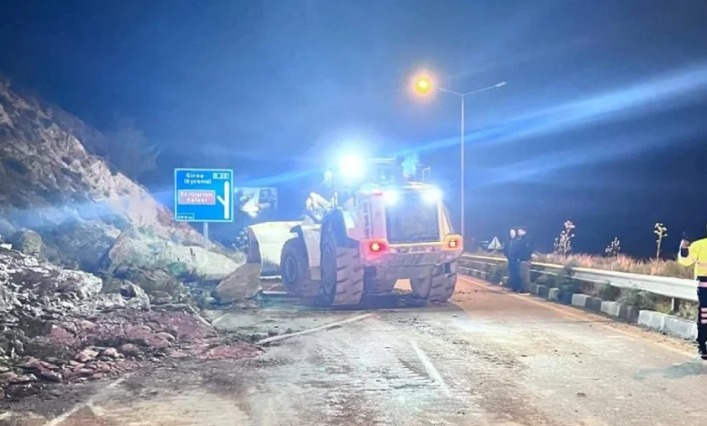 Polis basın subaylığından verilen bilgiye göre Lefkoşa – Girne Anayolu’nda Darboğaz Mevkiinde yola düşen kaya parçaları, özel bir şirkete ait iş makinesi yardımıyla temizlendi.