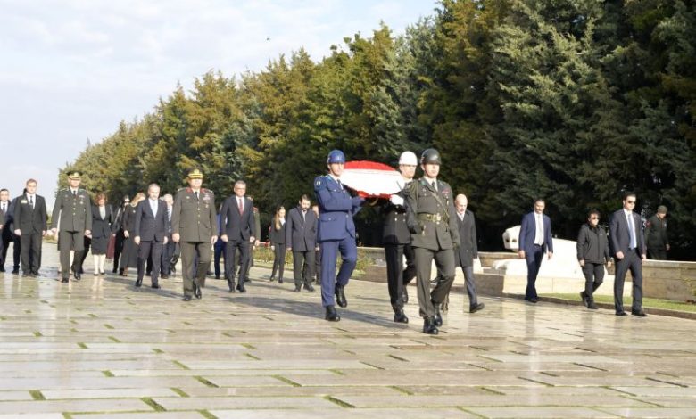 Erhürman, Anıtkabir ziyaretinde, ilk olarak beraberindeki heyetle Aslanlı Yol'dan Mustafa Kemal Atatürk'ün mozolesine yürüdü.