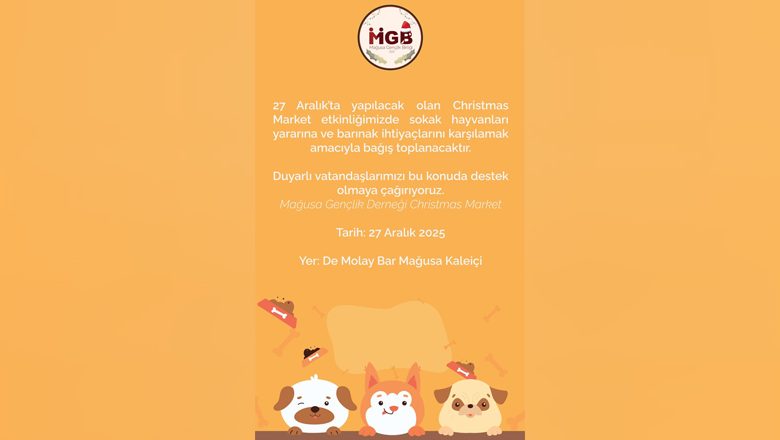Mağusa Gençlik Birliği, sokak hayvanları yararına, cumartesi günü Christmas Market etkinliği düzenleyecek.
