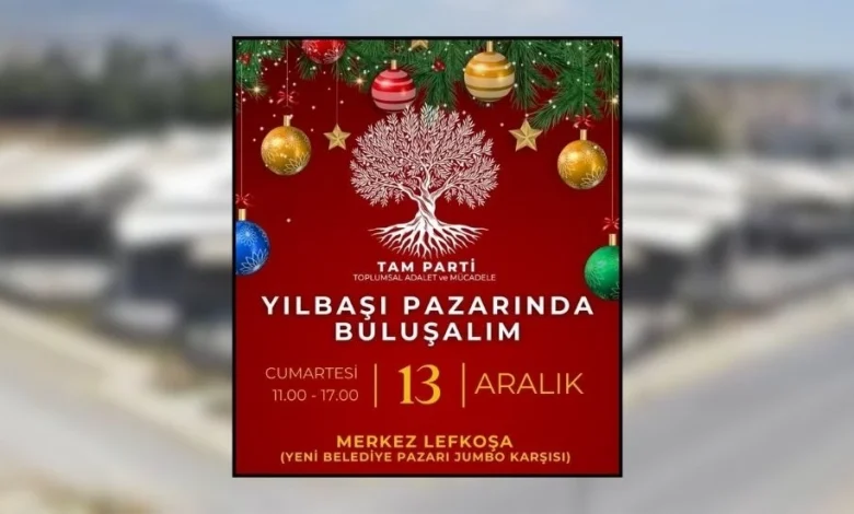Toplumsal Adalet ve Mücadele Partisi (TAM Parti), 13 Aralık Cumartesi günü Merkez Lefkoşa’da yılbaşı pazarı etkinliği gerçekleştirecek. Etkinlik, sabah 11.00’de başlayıp akşam 17.00’ye kadar sürecek.